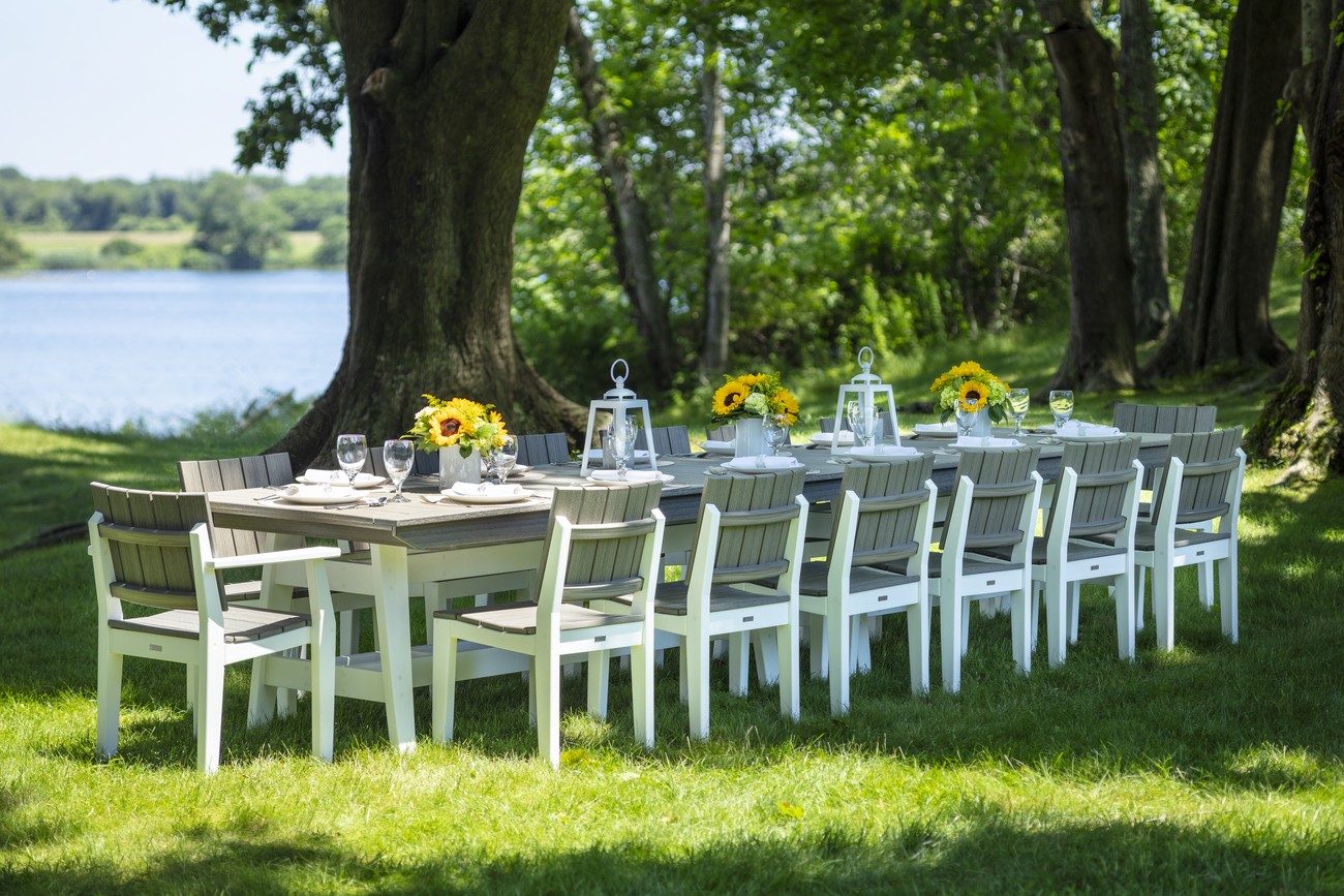 This line offers the modern square and rectangle table shape in dining, balcony and bar heights and in variety of size. The line also offers matching chair to create the set. In this collection you can choose the style of the chair to use woven wicker panel or regular slat.